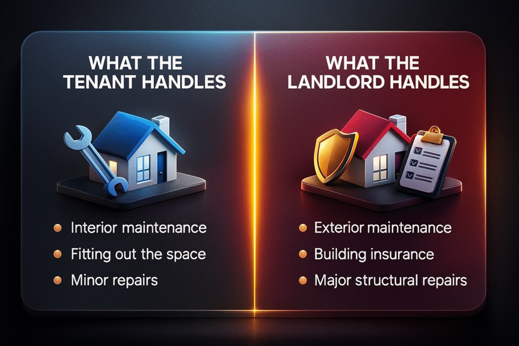 Some properties use a Full Repairing and Insuring (FRI) lease, which means you take care of most repairs and the general upkeep of the space. You also cover the cost of insuring the property. This type of lease gives you more control, but it also means you need to plan for unexpected maintenance costs.